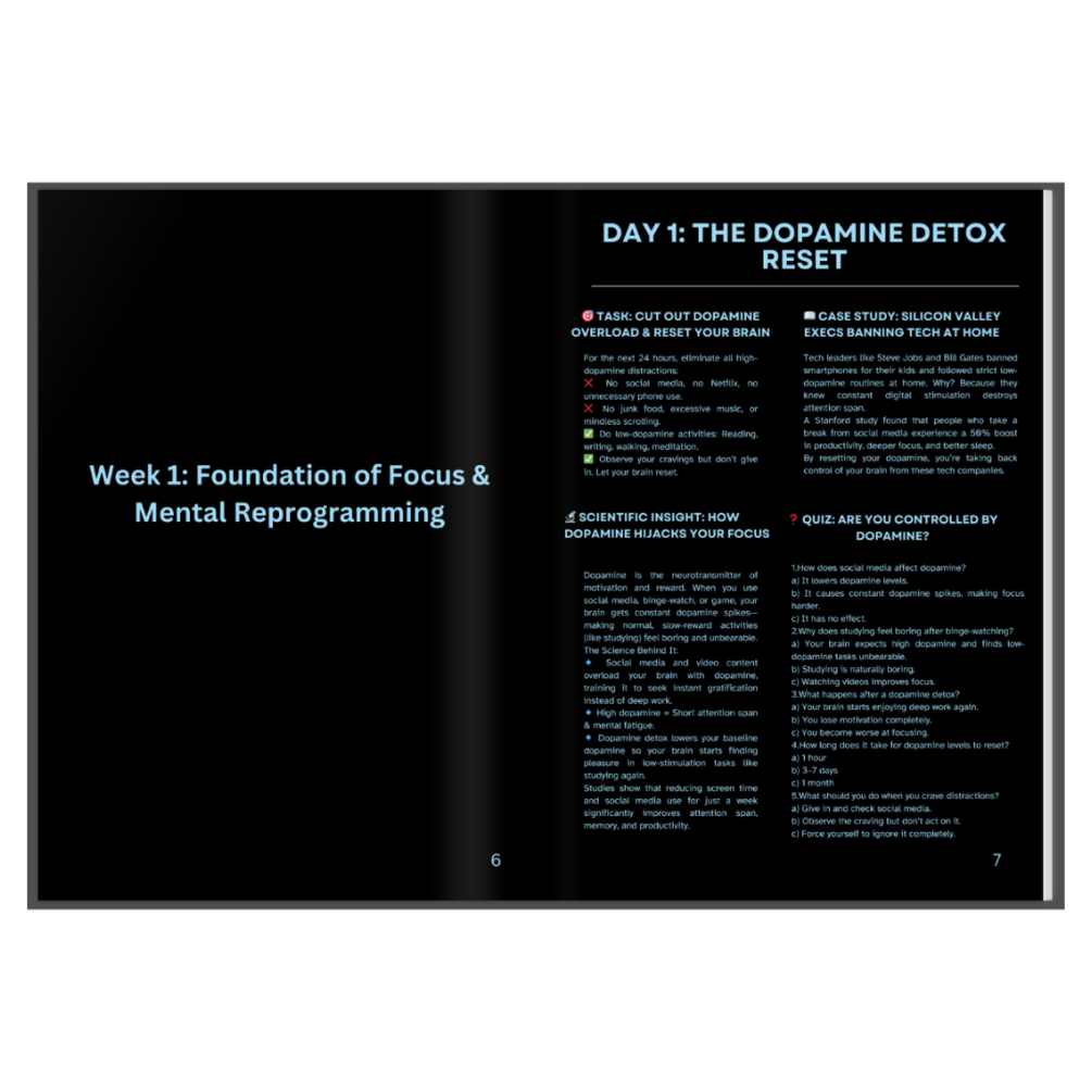 🚀 Struggling to Focus? Tired of Wasting Time? This 30-day system will rewire your brain for unshakable concentration, discipline, and high-performance studying—backed by neuroscience, psychology, and real-world success strategies.